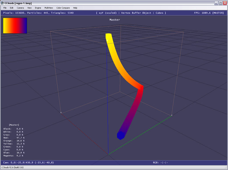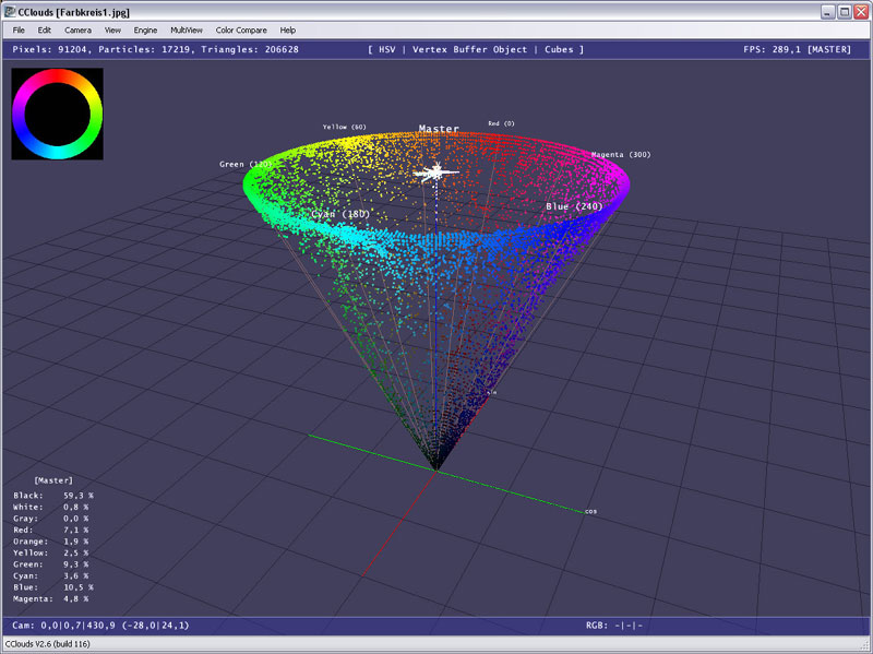 ColorClouds is a software for the analysis and presentation of the colors of images in different color spaces.