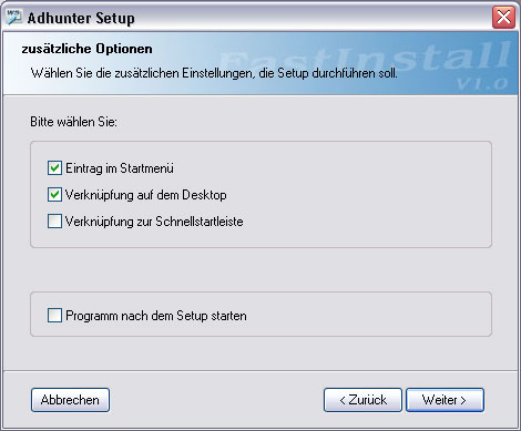 Creation of shortcuts to Start Menu, Quick Launch and Desktop |