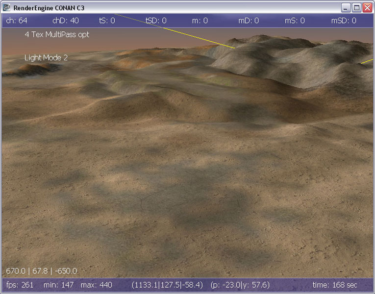 The C3 is a redevelopment engine based on the experiences from the C1/C2. The Engine uses a modular system supporting rendering and animating of 3d-modells, terrain, sky/clouds, and effects like explosions, smoke and furthermore postprocessing effects like bloom. |